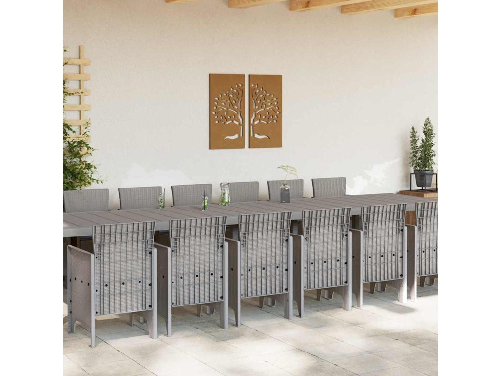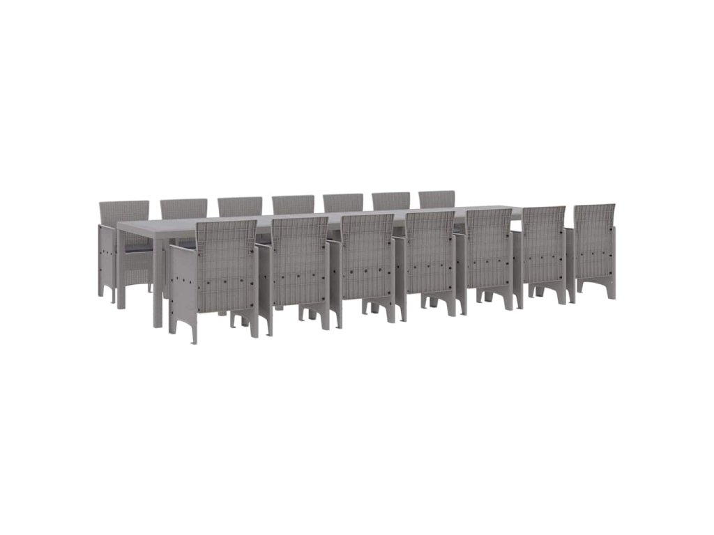 Zahradní jídelní souprava s polštáři 15 pcs Světle šedá PP 3378810