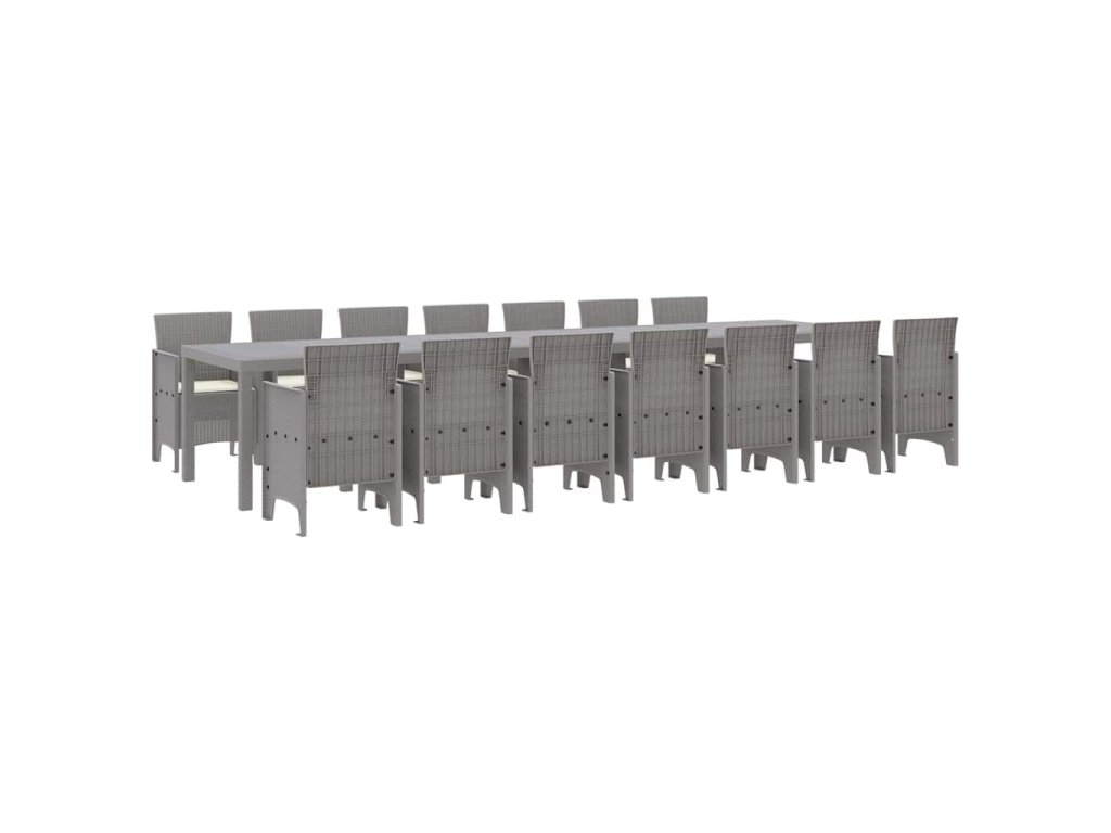 Zahradní jídelní souprava s polštáři 15 pcs Světle šedá PP 3378811