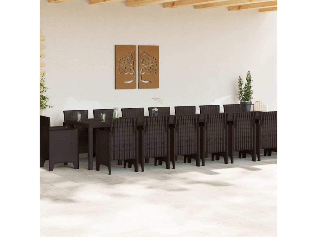Zahradní jídelní souprava s polštáři 17 pcs Hnědá PP 3378657