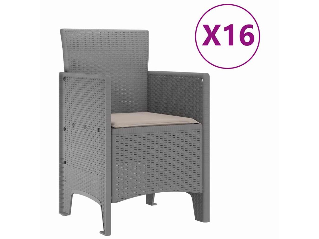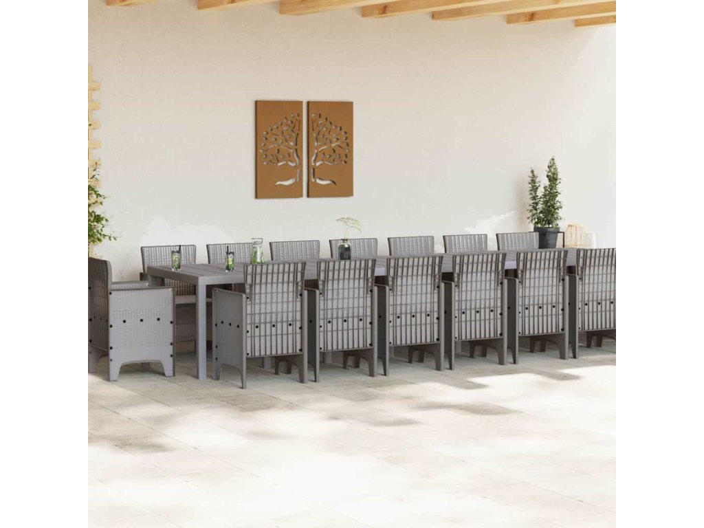Zahradní jídelní souprava s polštáři 17 pcs Světle šedá PP 3378668