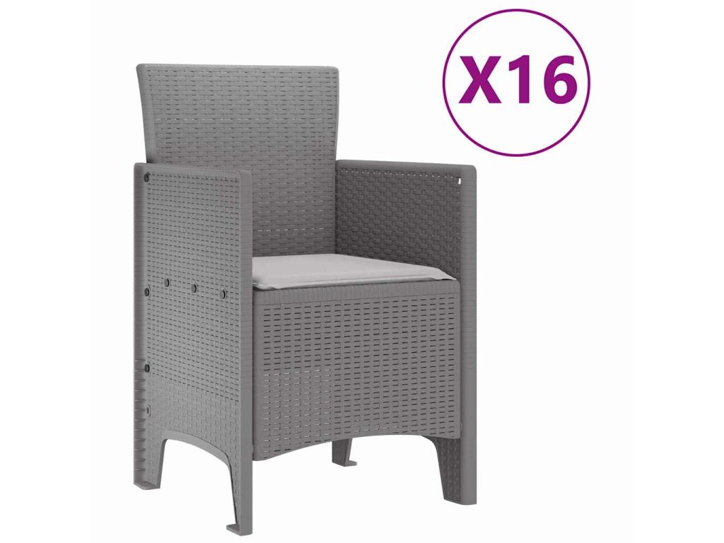 Zahradní jídelní souprava s polštáři 17 pcs Světle šedá PP 3378669