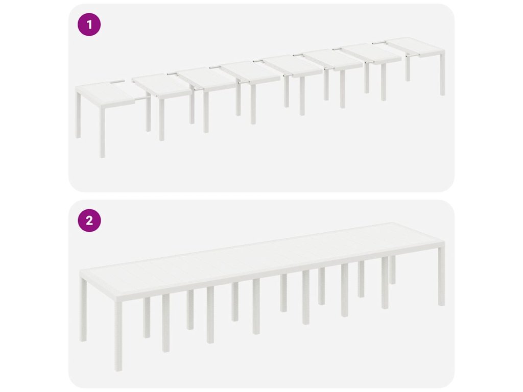 Poly ratanová konstrukce Set je vyrobený z poly ratanu, který je známý svojí trvanlivostí a skvělým vzhledem. Je odolný vůči letnímu počasí a zachovává si svůj vzhled i během času. Snadno se udržuje a spojuje styl s funkčností, takže je ideální pro venkovní použití. Pohodlí sezení Každé sedadlo má příjemné polstrování, které zaručuje pohodlí při delším sezení. Rám z poly ratanu poskytuje oporu, což umocňuje zážitek ze sezení. Skvělé na zahradní párty nebo rodinné sejítí, kde je pohodlí na prvním místě. Ploché opěrky rukou Ploché opěrky rukou zvyšují pohodlí a dělají celý set ještě elegantnější. Tento designový prvek podtrhuje jednoduchost a funkčnost setu, dokonale ladí s moderními trendy, kde funkce jde ruku v ruce s designem. Prostorné uspořádání Měří 400 x 100 cm, což nabízí dostatek místa pro velké skupiny. Je to ideální místo pro zábavu hostů s bohatým stolem. Každý má dost místa kolem stolu a to zlepšuje celkový zážitek ze stolování. Snadné sestavení Set se sestavuje ve dvou s šroubovákem. Instrukce jsou jasné, takže sestavení je rychlé a bezproblémové, což zajišťuje stabilní a spolehlivou nabídku pro letní příležitosti.- Barva: Bílá