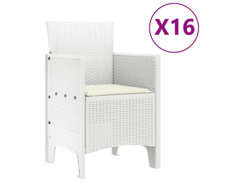 Zahradní jídelní souprava s polštáři s polštářem 17 pcs Bílá PP 3378666