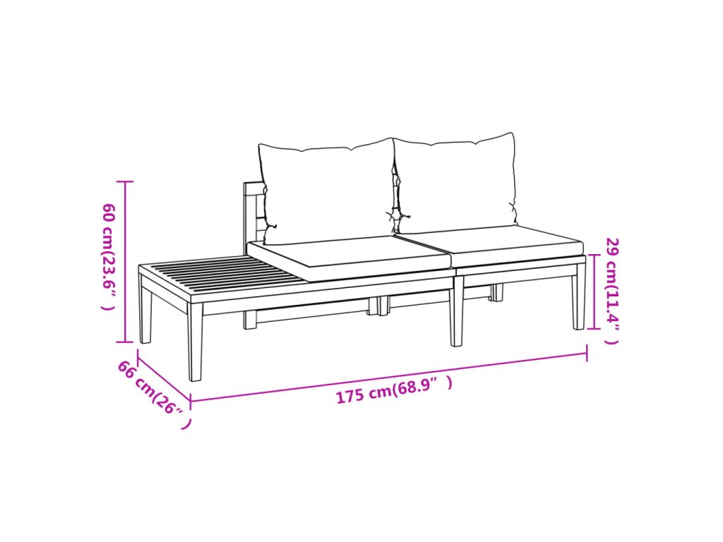 Zahradní lavice je zhotovená z masivního akáciového dřeva, což je tvrdé dřevo s hustou texturou. Má překrásný design, kterým zaujme na první pohled, a je velice stabilní a odolná. Zručné řemeslné zpracování a nádherná kresba dřeva od sebe jednotlivé kusy navzájem lehce odlišují. Přiložené podušky vám při odpočinku zajistí maximální pohodlí. Stolek se dá navíc libovolně namontovat na levou i pravou stranu.