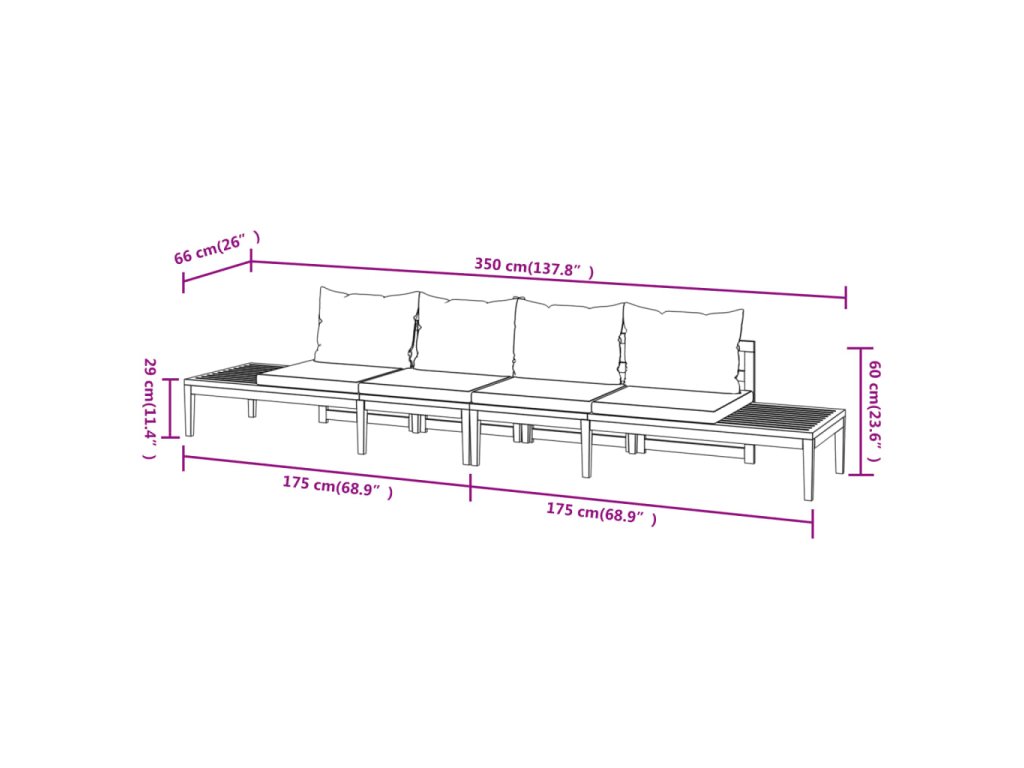 - Rozměry každé lavice: 175 x 66 x 60 cm (D x Š x V)