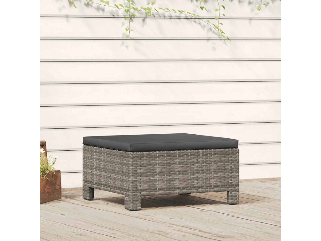 Zahradní podnožka s polštářem šedá polyratan 362695