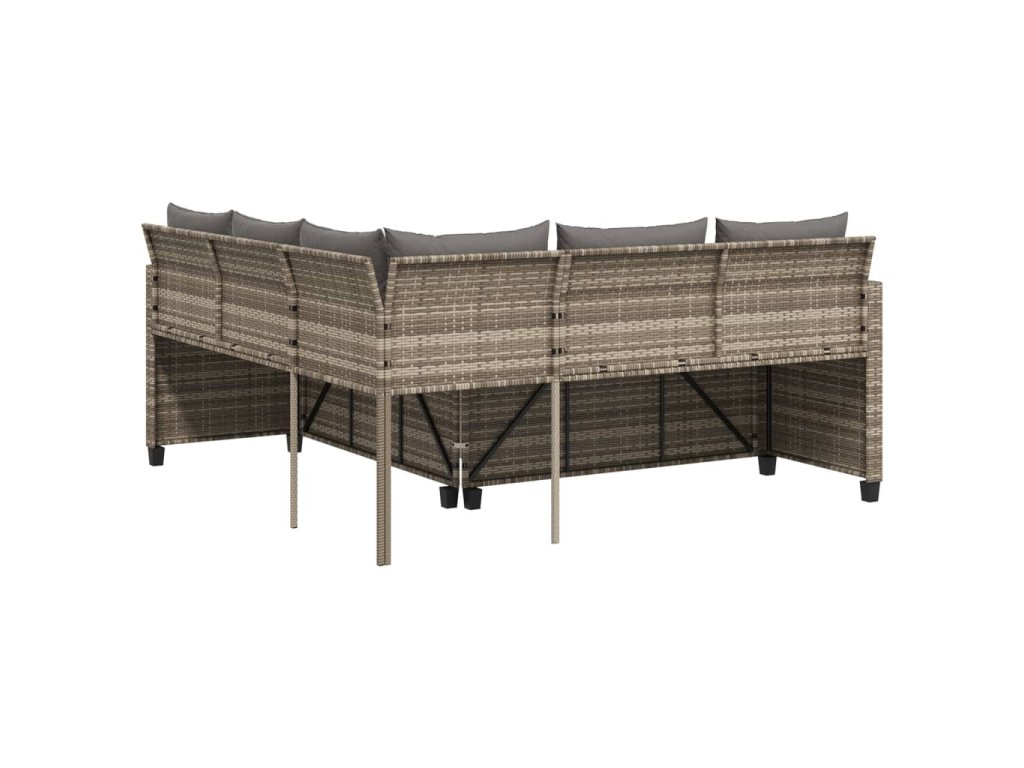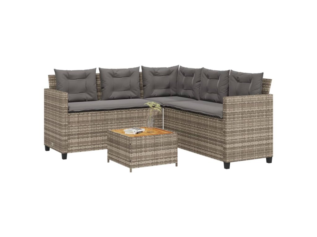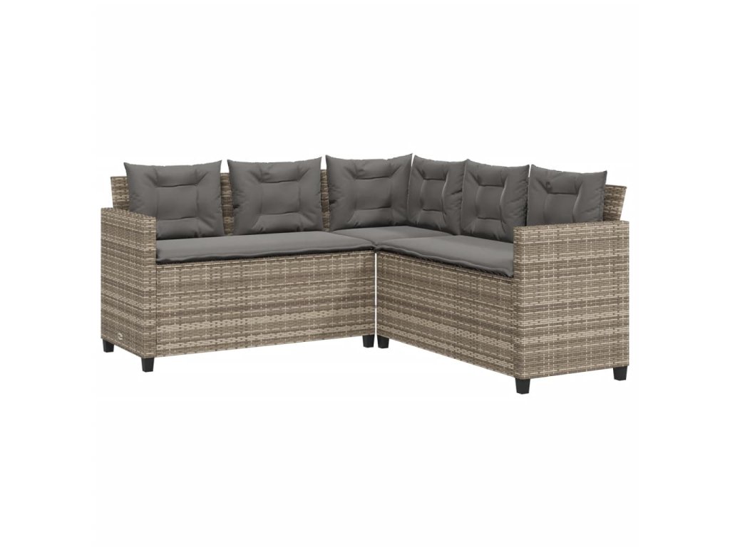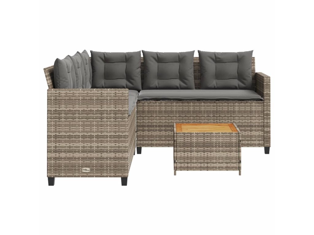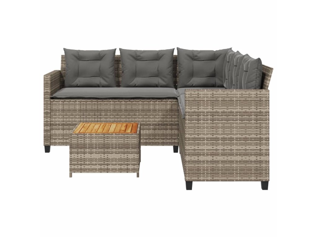 Zahradní pohovka ve tvaru L stolek a podušky šedá polyratan 369049