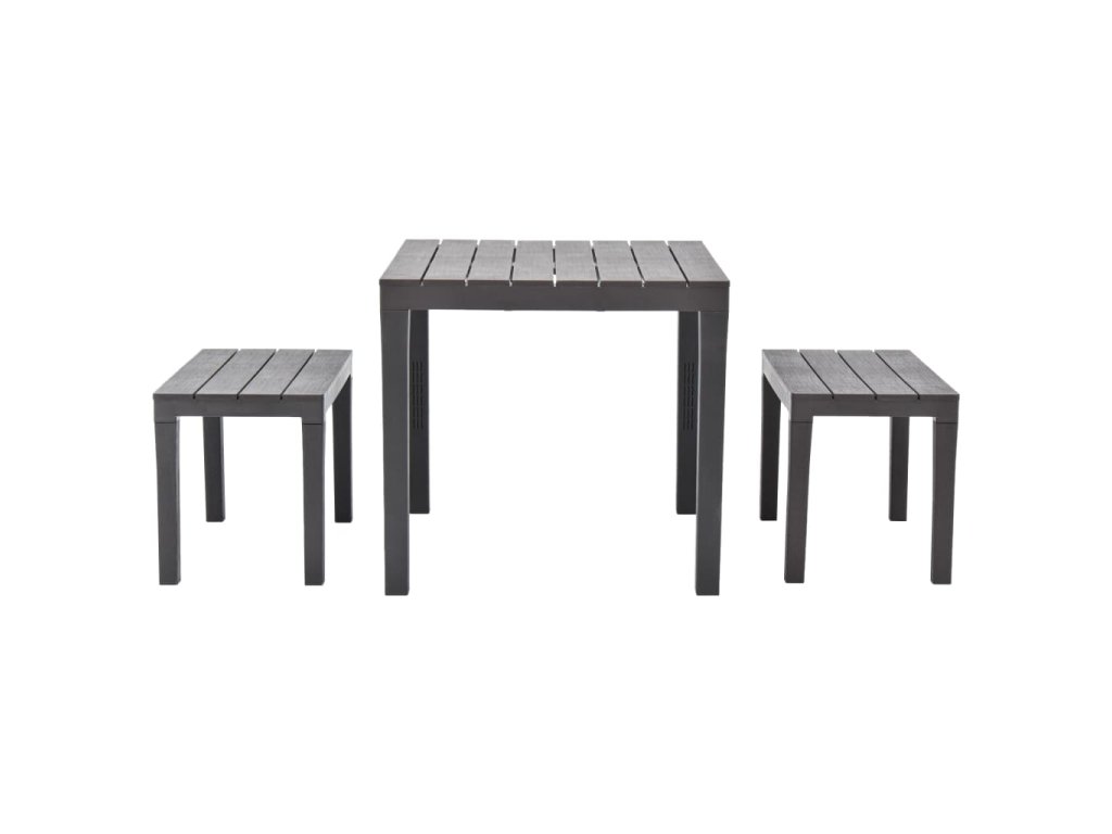 Zahradní set je vyrobený z bezúdržbového plastu, který výborně vzdoruje nepřízni počasí, je vysoce odolný a hodí se pro každodenní použití. Lavice se širokými sedáky nabízí dostatek místa pro vaši rodinu a přátele. Montáž není nutná.