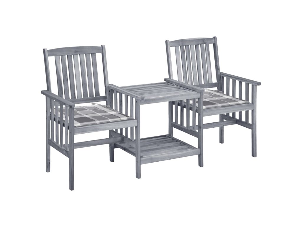 Stůl i židle jsou zhotovené z masivního akáciového dřeva, takže jsou mimořádně stabilní a robustní. Odolná stolní deska a spodní polička se skvěle hodí pro odkládání hrníčků, knih a dalších menších předmětů. Opěradla a područky křesílek vám pak zajistí příjemné posezení a relaxaci. Podušky vám dopřejí větší pohodlí. Každá poduška je opatřená dvěma páry šňůrek pro pevné uchycení.