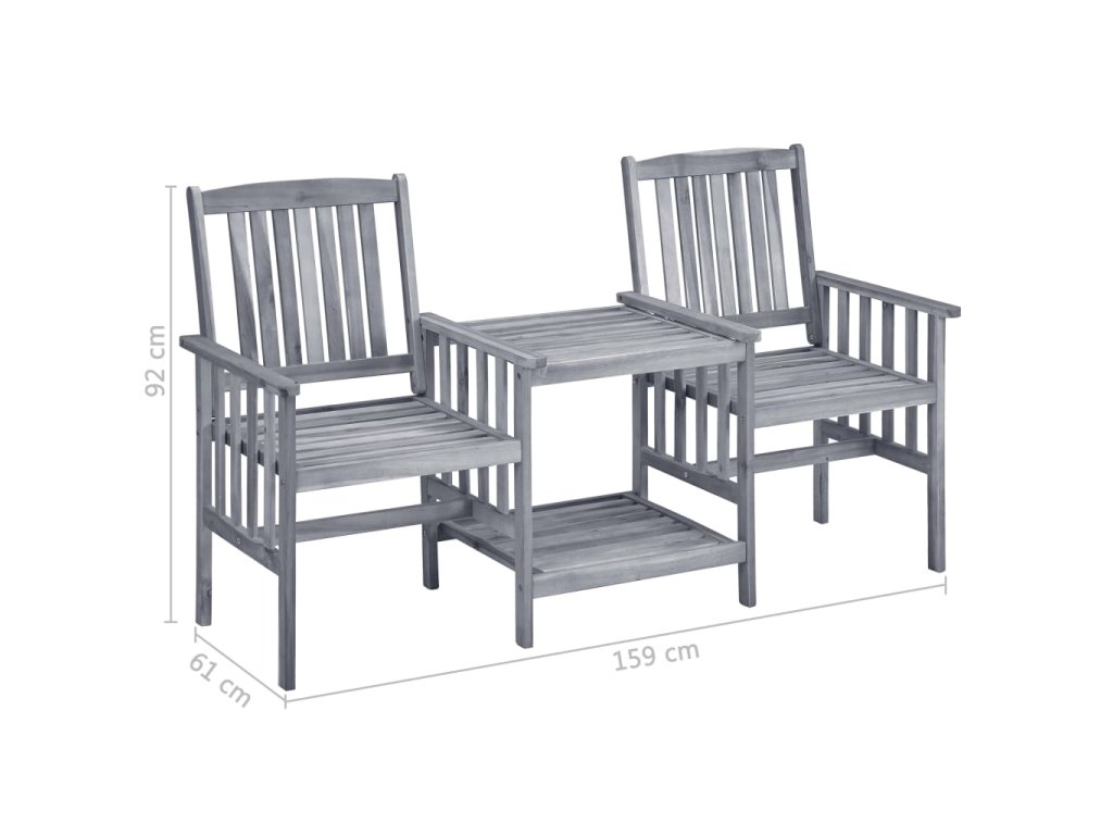 Stůl i židle jsou zhotovené z masivního akáciového dřeva, takže jsou mimořádně stabilní a robustní. Odolná stolní deska a spodní polička se skvěle hodí pro odkládání hrníčků, knih a dalších menších předmětů. Opěradla a područky křesílek vám pak zajistí příjemné posezení a relaxaci. Podušky vám dopřejí větší pohodlí. Každá poduška je opatřená dvěma páry šňůrek pro pevné uchycení.