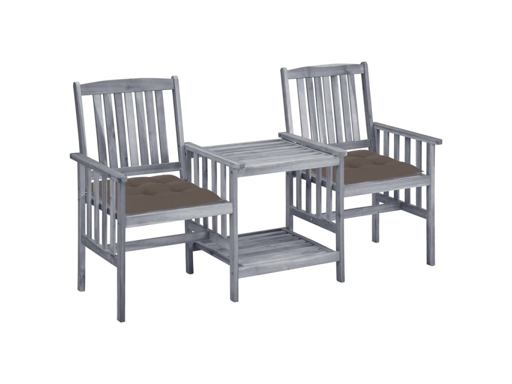 Zahradní židle s čajovým stolkem a poduškami masivní akácie 3061325