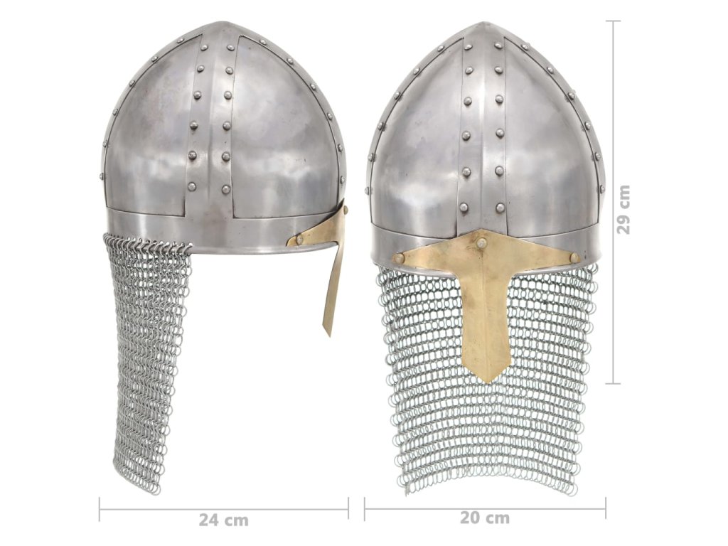 Rytířská helma je přesná replika původní křižácké rytířské přilby. Je zhotovená z oceli 18. Kombinací původního designu s odolným materiálem vznikla působivá přilba, která dokonale doplní vaši stávající rytířskou výbavu. Přilba je plně funkční, určená k nošení a zaručuje excelentní ochranu. Je známá také jako helma kalota. Malé otvory a průzory slouží k ventilaci a dobrému výhledu.