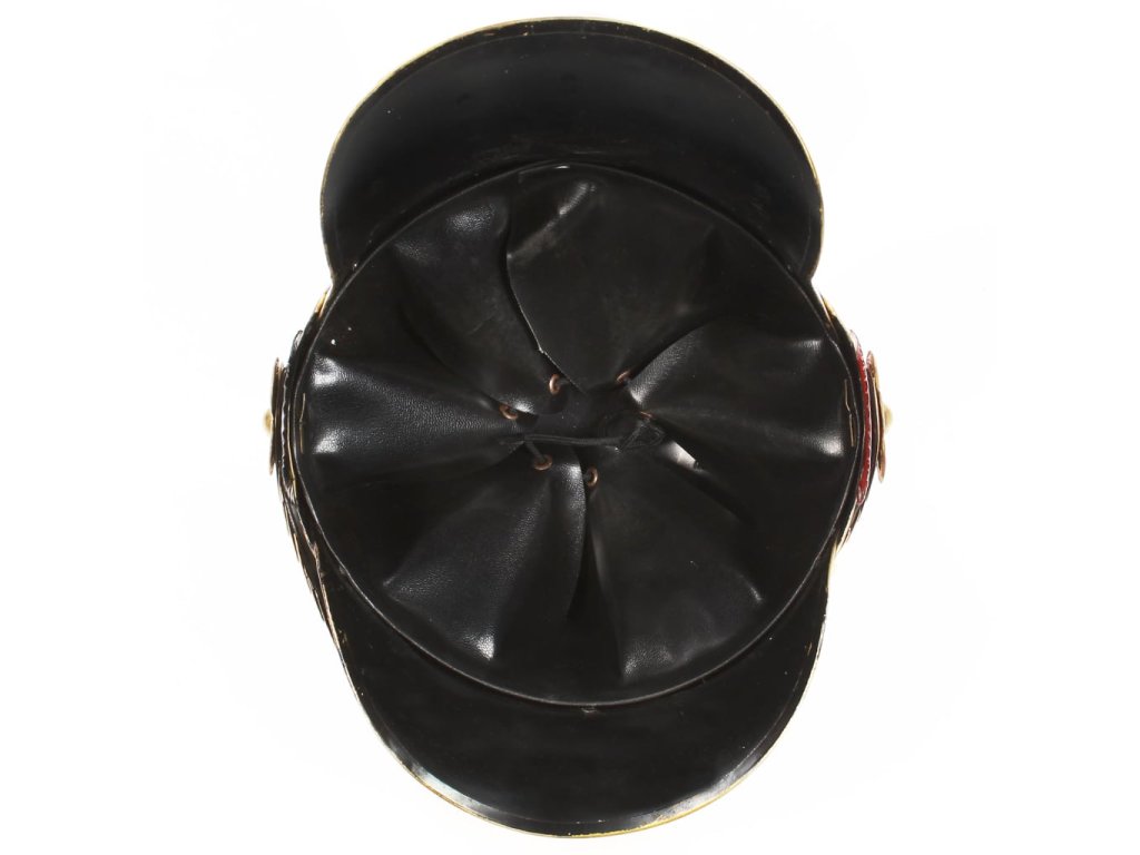 Přilba je dekorovaná orlem s rozpjatými křídly a má také nastavitelný řemínek pod bradu. Řemínek je na boku přilby nýtovaný a ozdobený mosazným trojlístkem.