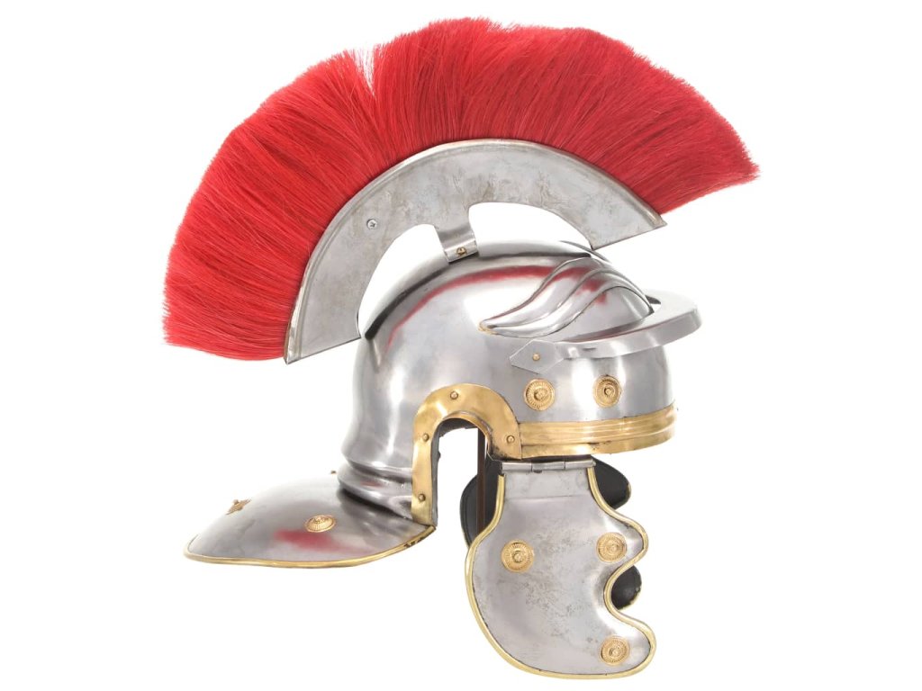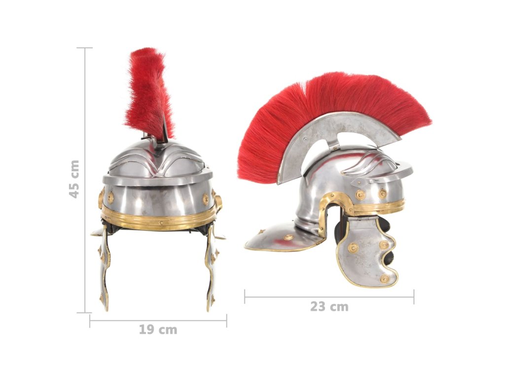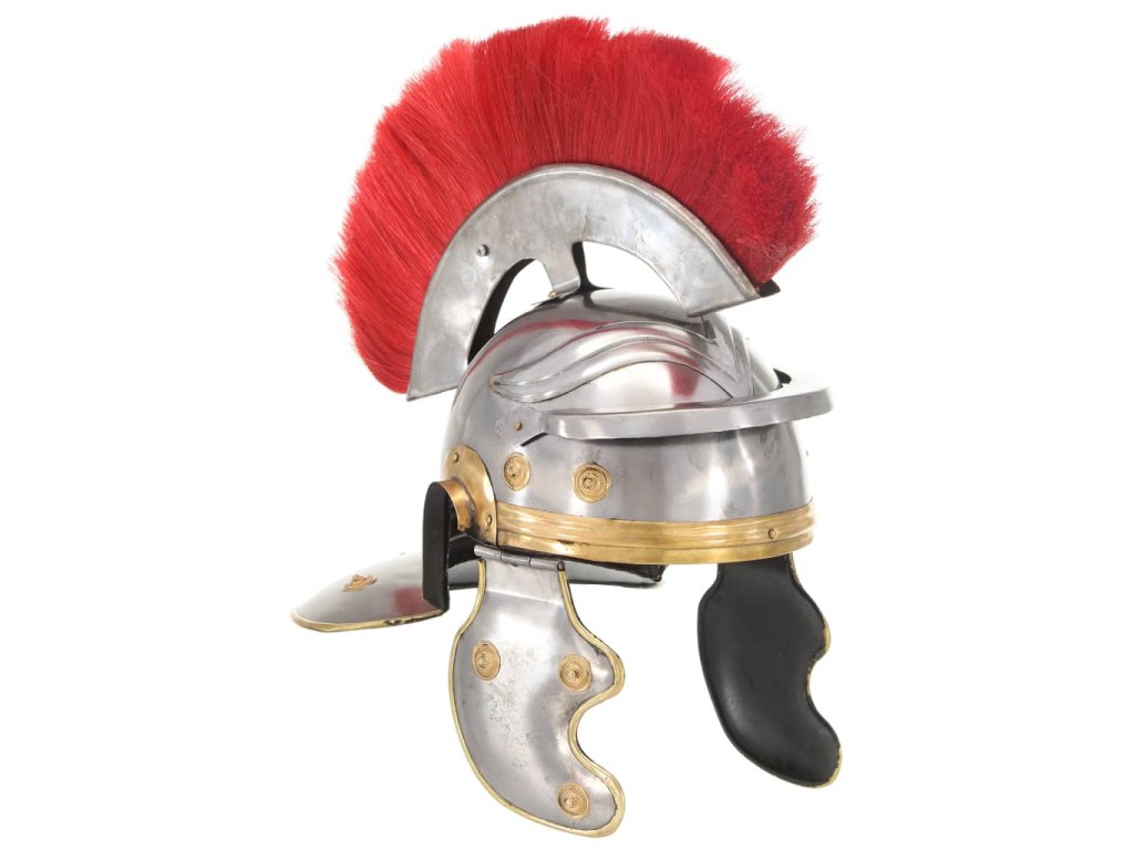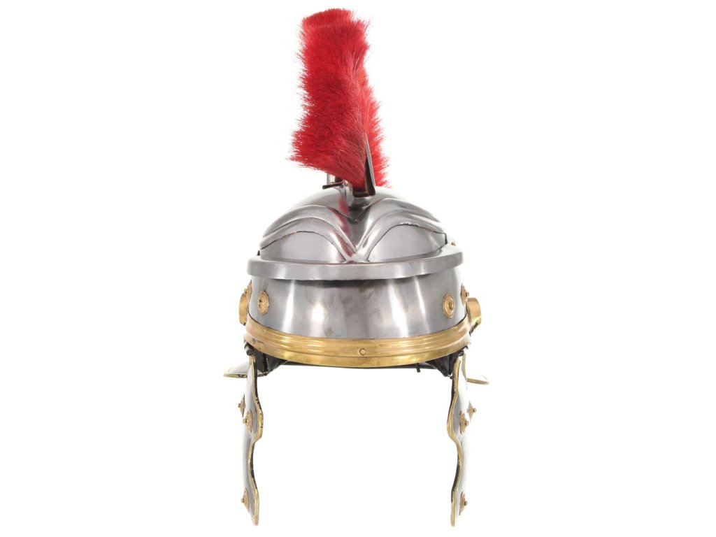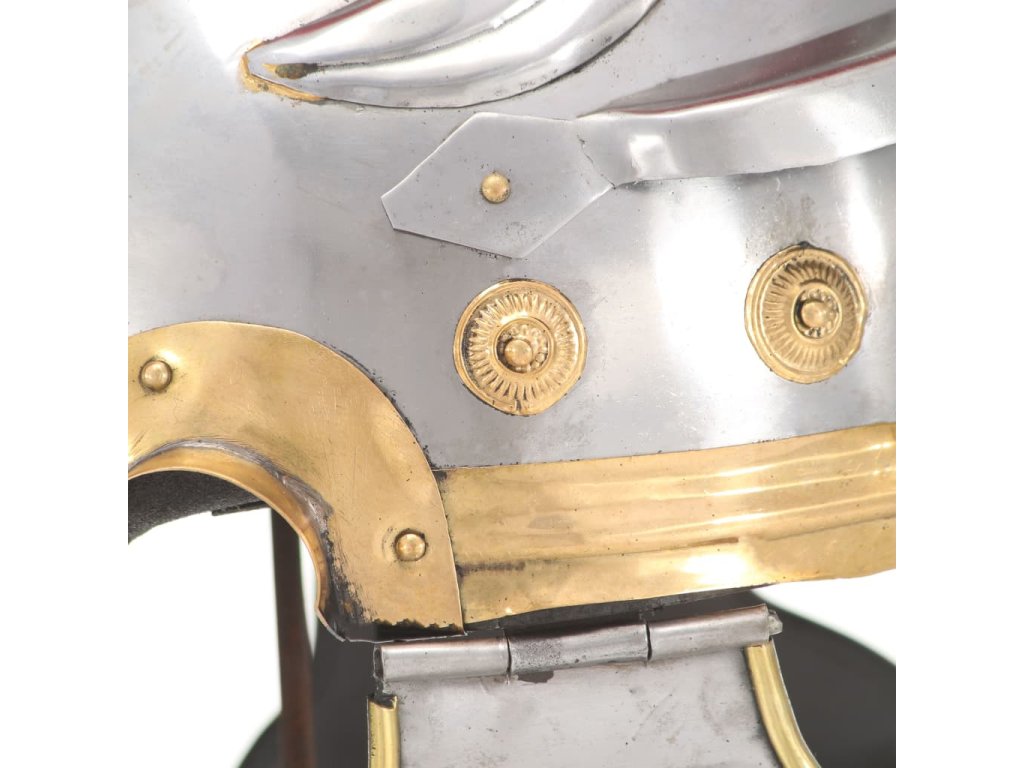 Helma je přesná replika původní římské vojenské přilby. Je zhotovená z leštěné oceli 18. Kombinací antického designu s odolným materiálem vznikla působivá přilba, která dokonale doplní vaši stávající rytířskou výbavu. Jedná se o přilbu s chocholem a dvěma lícnicemi na závěsech. Přilba zaručuje skvělou ochranu, ale zároveň nijak svému nositeli nepřekáží. Přilba je také atraktivním výstavním kusem.