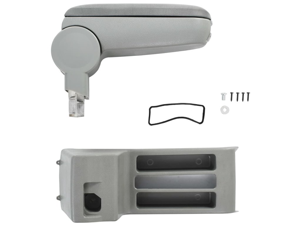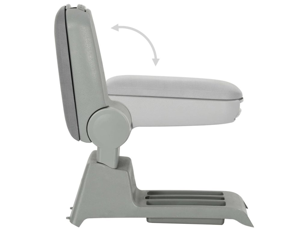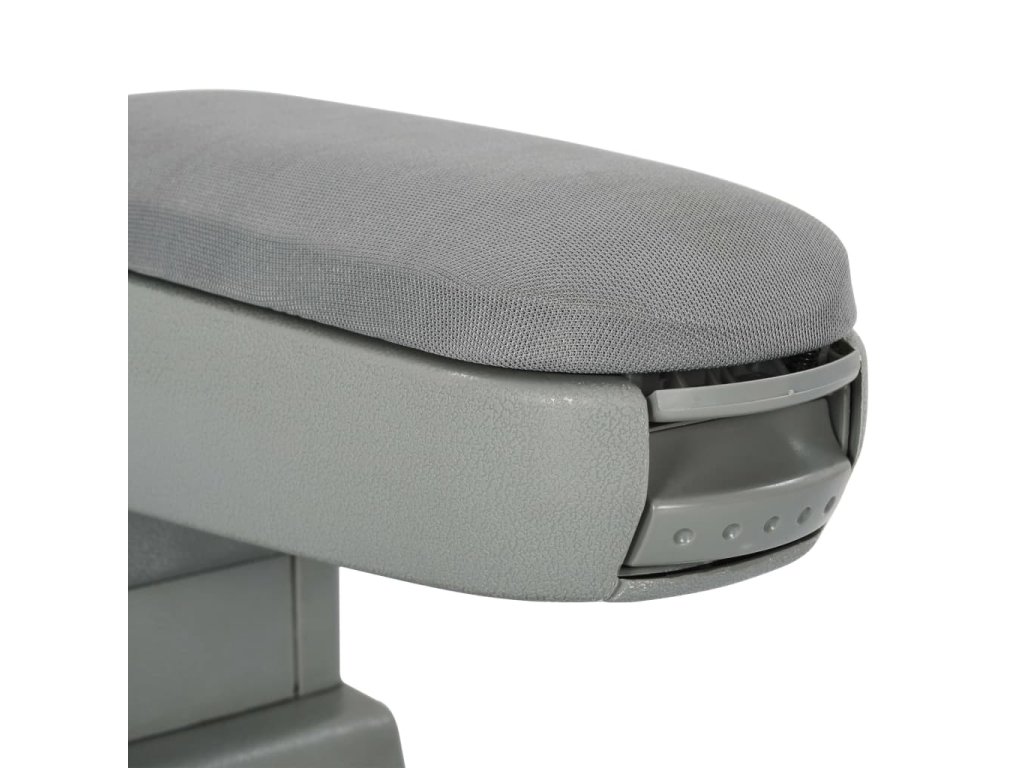 Loketní opěrka sestává z odolné plastové základny a úložného prostoru s polstrovaným víkem, o které se můžete pohodlné opřít.