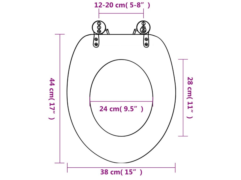 Víko i sedátko z MDF zaručují dlouhotrvající pevnost, odolnost a výdrž. Jelikož je toto WC sedátko určené pro dlouhodobé užívání, je vybavené panty, zhotovenými z extrémně silné a odolné slitiny chromu a zinku. Záchodové prkénko sedí na všechny běžné záchodové mísy. Šířka mezi panty je nastavitelná v rozmezí od 12 do 20 cm. Montáž i údržba WC sedátka jsou snadné.