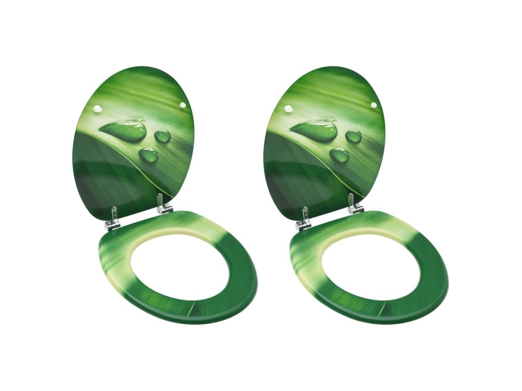 WC sedátka s víky 2 ks MDF motiv zelené vodní kapky 3056407