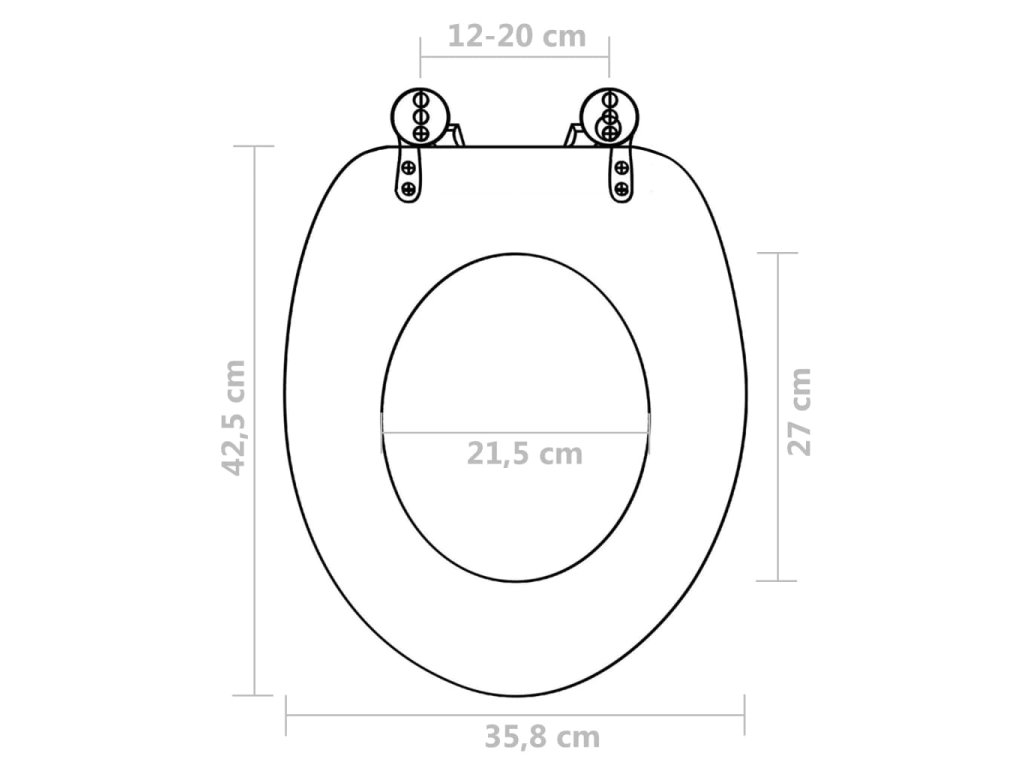 MDF víko a sedátko je velmi pevné, tvrdé a odolné. Je doplněné panty zhotovenými z extra silné a odolné slitiny chromu a zinku. Je designované pro dlouhodobou životnost.