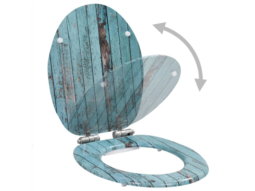 Víko a sedátko jsou zhotovena z MDF desky, takže jsou pevná a odolná. Panty jsou vyrobené z extrémně silné slitiny chromu a zinku. Toaletní prkénko disponuje funkcí pomalého sklápění, víko se tedy zavírá a otevírá pomalu a tiše, aby nedělalo přílišný hluk a vydrželo vám sloužit dlouhé roky.