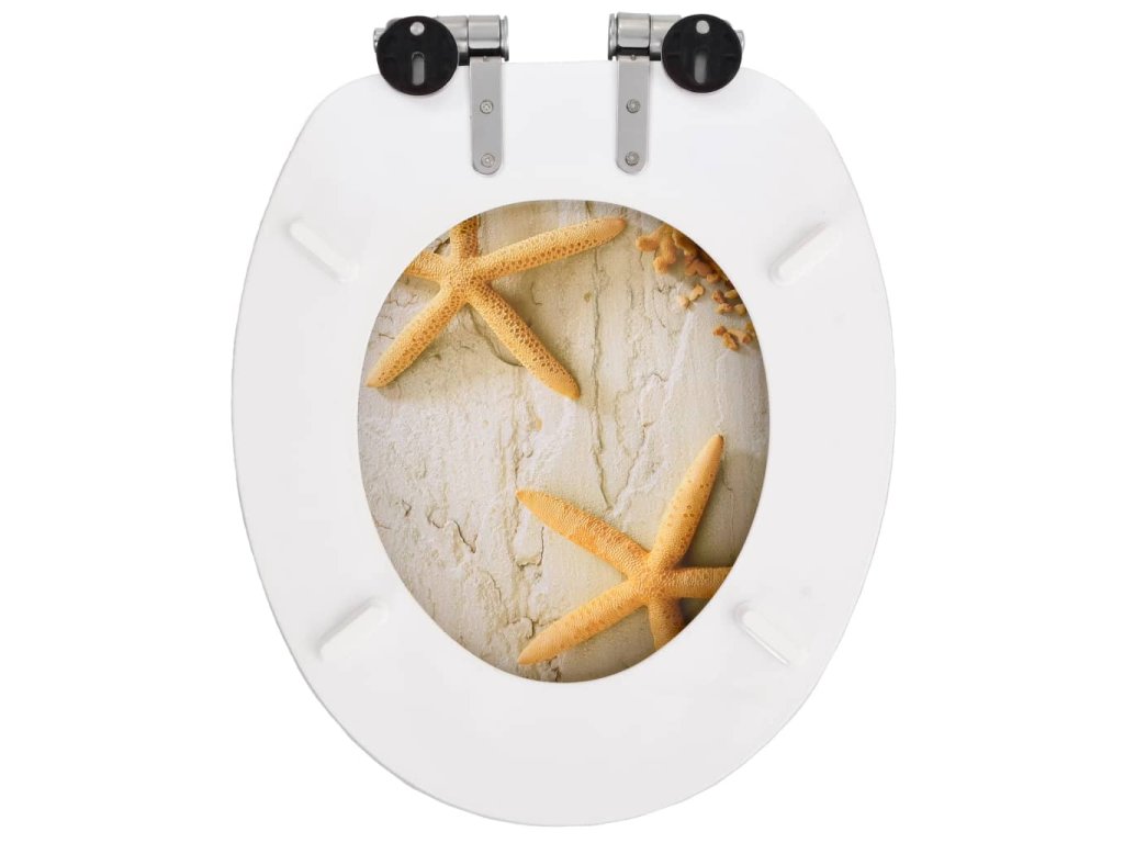Víko a sedátko jsou zhotovena z MDF desky, takže jsou pevná a odolná. Panty jsou vyrobené z extrémně silné slitiny chromu a zinku. Toaletní prkénko disponuje funkcí pomalého sklápění, víko se tedy zavírá a otevírá pomalu a tiše, aby nedělalo přílišný hluk a vydrželo vám sloužit dlouhé roky.