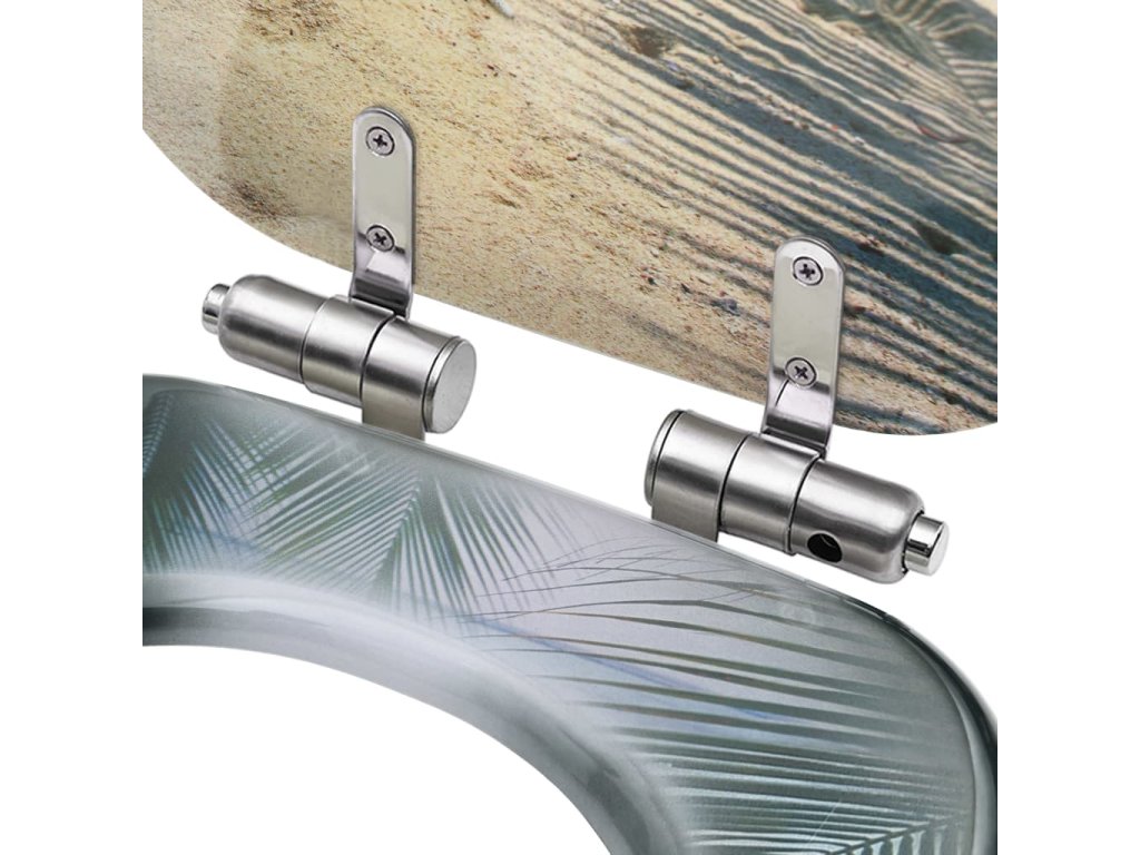Sedátko i víko z MDF jsou mimořádně pevné a odolné. Panty jsou vyrobené z extrémně pevné slitiny chromu a zinku. Záchodové prkénko disponuje funkcí pomalého sklápění, což znamená, že se zavře zvolna a tiše.