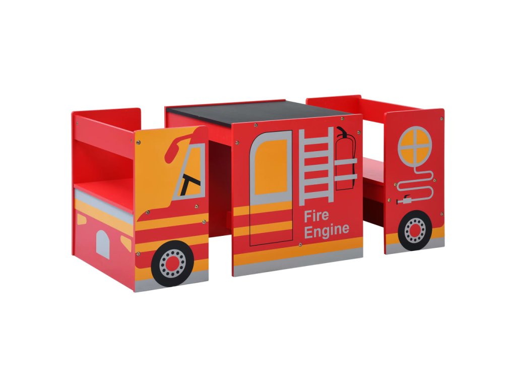 3dílná sada dětského stolu a židlí tvar hasičského auta dřevo 286190