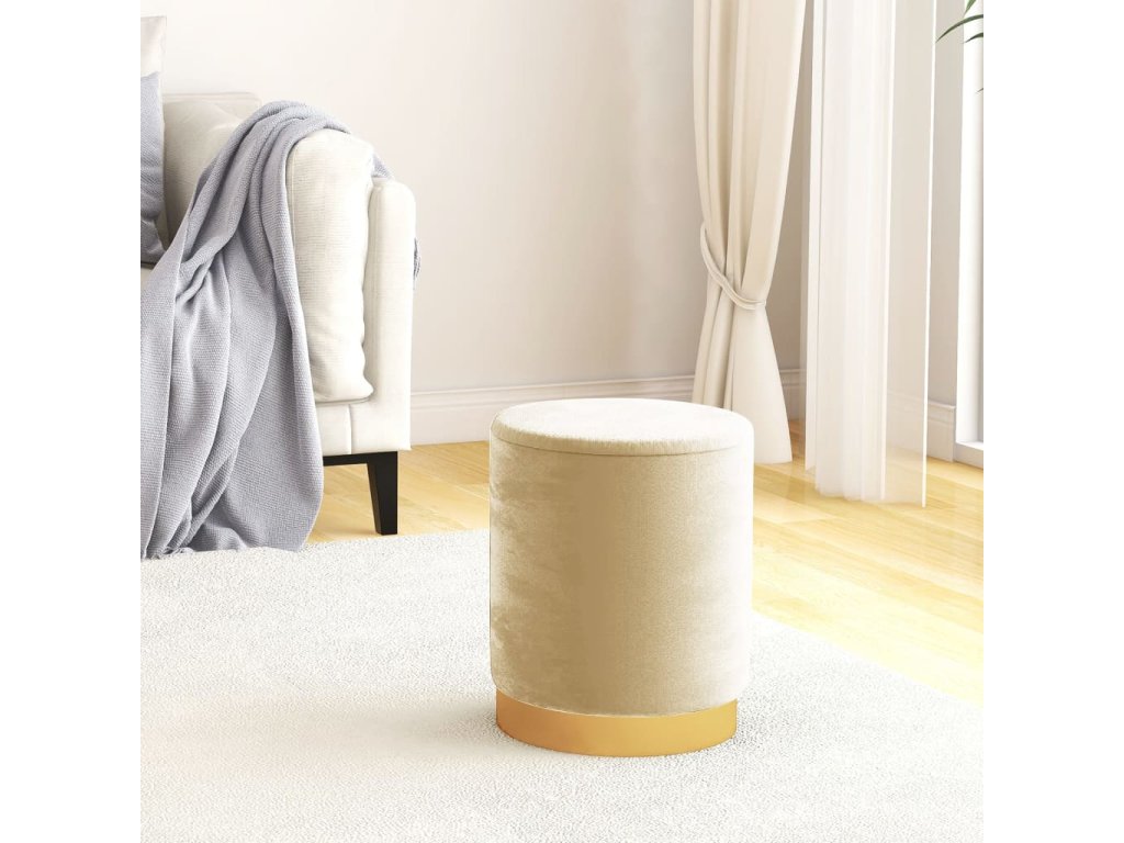 Klasická kulatá stolička je nejen prostorově úsporná, ale navíc vám zajistí optimální pohodlí, protože je čalouněná měkkým sametem. Je také opatřená víkem, pod kterým se skrývá úložný prostor, kam si můžete dát nejrůznější doplňky, knihy a časopisy. Elegantní železná základna zdůrazňuje jedinečnou krásu židle a dodává jí na odolnosti. Stolička představuje ideální doplněk do vaší předsíně nebo obývacího pokoje a vnese do vašeho bydlení nádech luxusního stylu.
