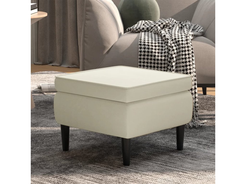 Taburetka s dřevěnými nohami krémová sametová 329445