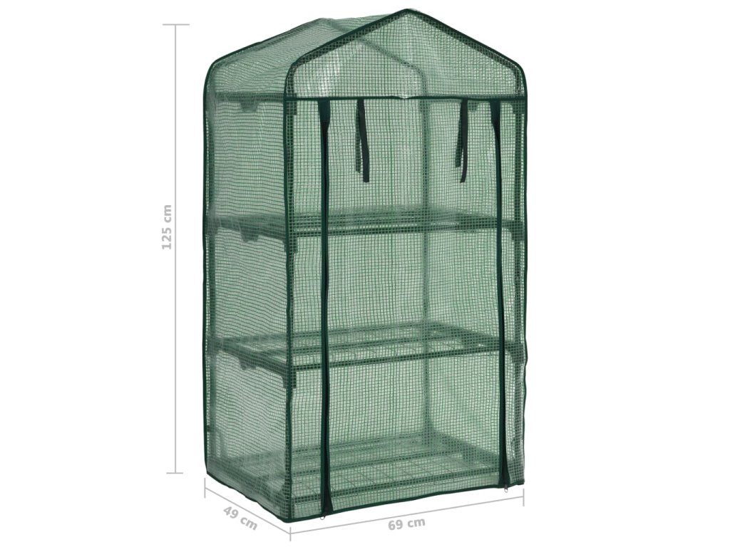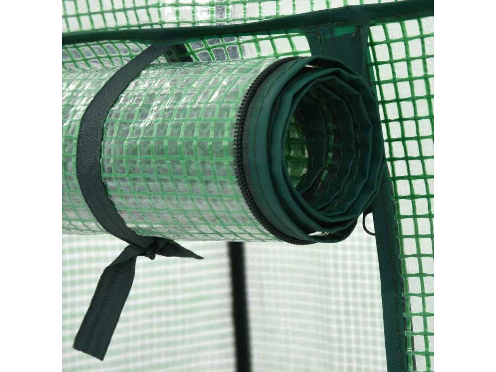 Konstrukci tvoří odolné a korozivzdorné ocelové trubky pro zvýšenou stabilitu. Vnější kryt z polyetylenu pomáhá zachycovat teplo a chrání křehké rostlinky před špatným počasím a hmyzem. Rolovací dveře se zavíráním na zip zajišťují snadný přístup a větrání pro optimální cirkulaci vzduchu. Skleník je vybavený 3 policemi, na které můžete úhledně rozestavět své květináče, sazeničky nebo zahradnické potřeby.