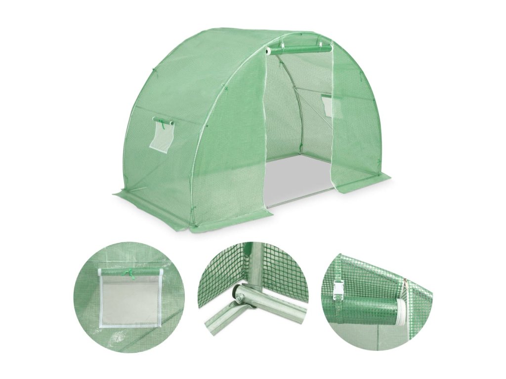 Skleník vaše rostliny ochrání nejen před větrem a deštěm, ale také před ptáky a přímým slunečním svitem. Je vyroben z PE tkaniny s gramáží 140 g/m², která je o 25 % těžší než standardní síťovina vyrobená konkurencí. O to lépe vzdoruje nepřízni počasí. Skleník disponuje rámem z pozinkované oceli, který skvěle vzdoruje korozi, takže je velmi stabilní. Navíc je vybavený dvěma odvětrávacími okénky o rozměrech 38 x 38 cm a dveřmi 100 x 185 cm.