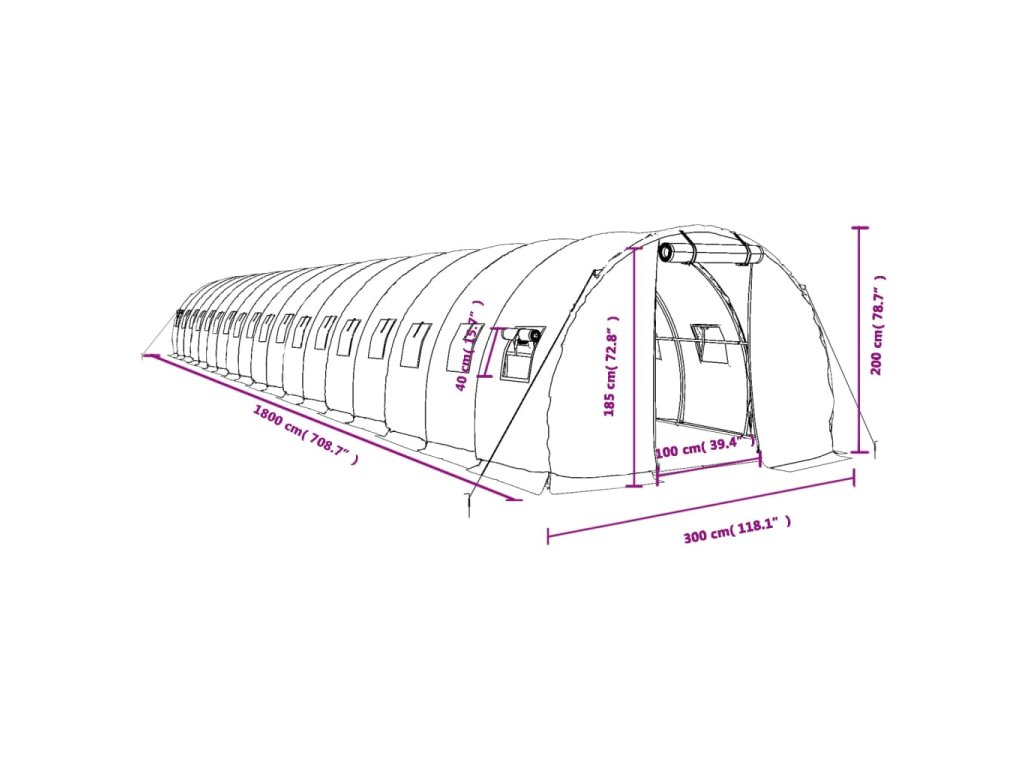 Skleník s ocelovým rámem bílý 54 m² 18 x 3 x 2 m 3188057