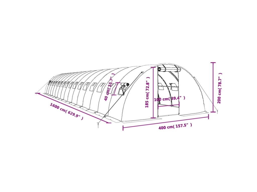Skleník s ocelovým rámem zelený 64 m² 16 x 4 x 2 m 3188067