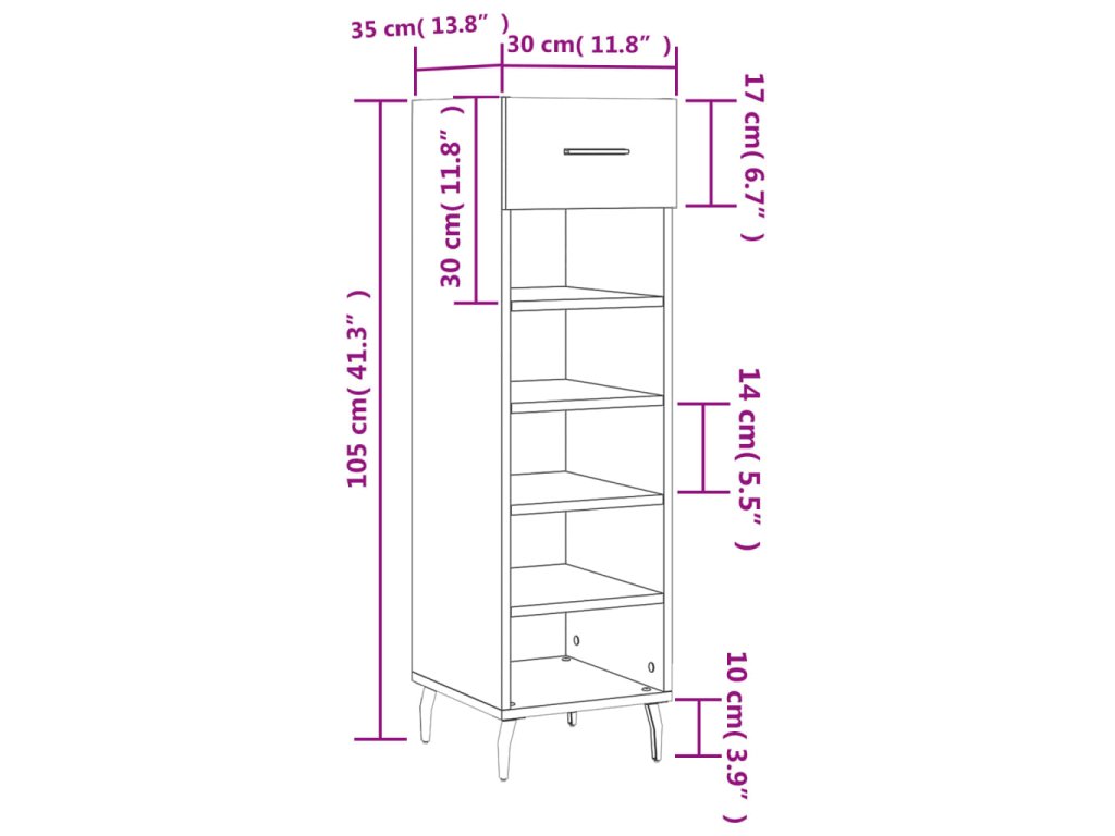 - Spousta úložného prostoru: Botník má 1 zásuvku a 5 otevřených přihrádek, poskytuje tedy spoustu místa na uložení všech typů obuvi.