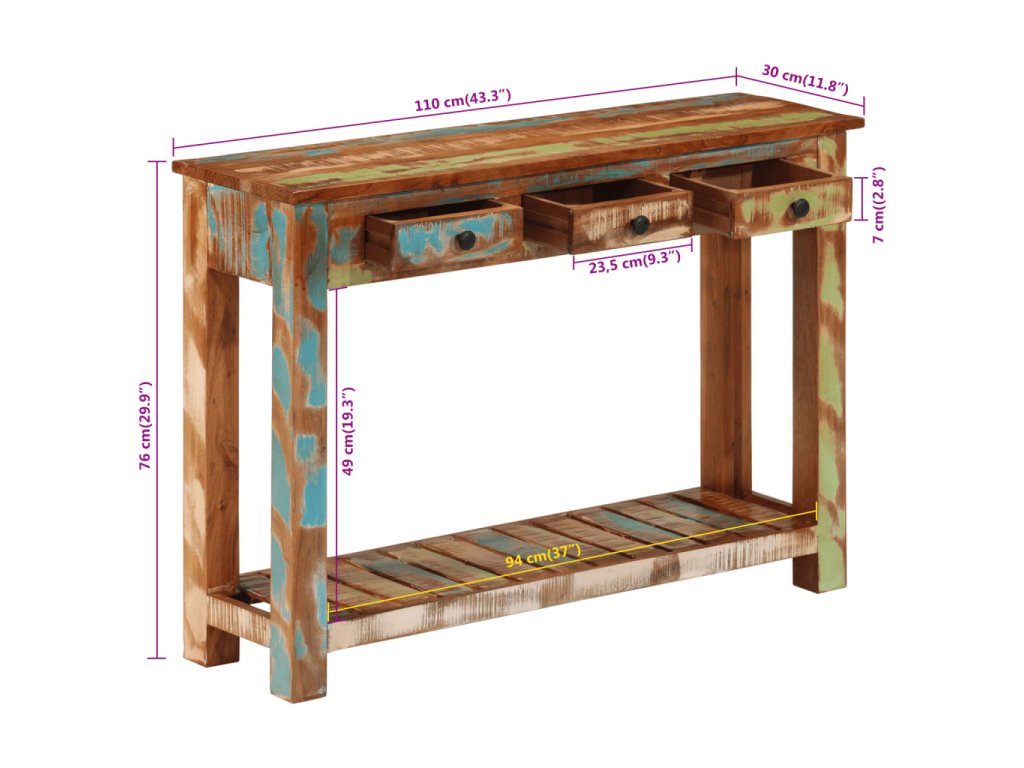 Konzolový stolek 110 x 30 x 76 cm masivní recyklované dřevo 376705