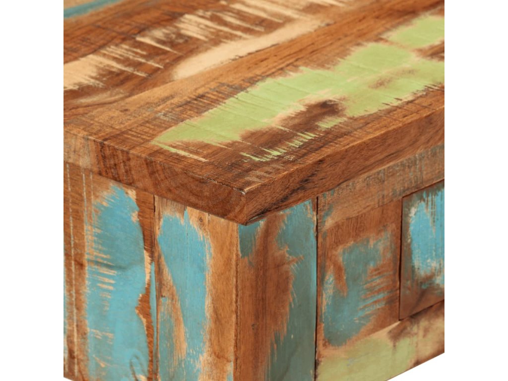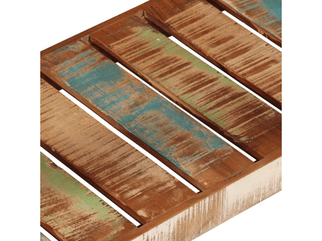 - Masivní recyklované dřevo: Masivní recyklované dřevo se skládá z opakovaně použitých dřevin, jako je teak, mangovník, borovice a buk. Toto dřevo pochází ze starých staveb, jako jsou továrny, kůlny a lodě. Jelikož je každý kus ručně vyrobený, odstíny se mohou u každého z nich lišit.