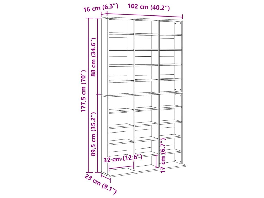 - Rozměry: 102 x 23 x 177,5 cm (Š x H x V)