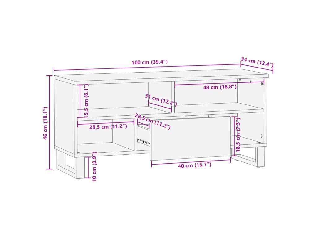 TV stolek 100 x 34 x 46 cm masivní akáciové dřevo 377518