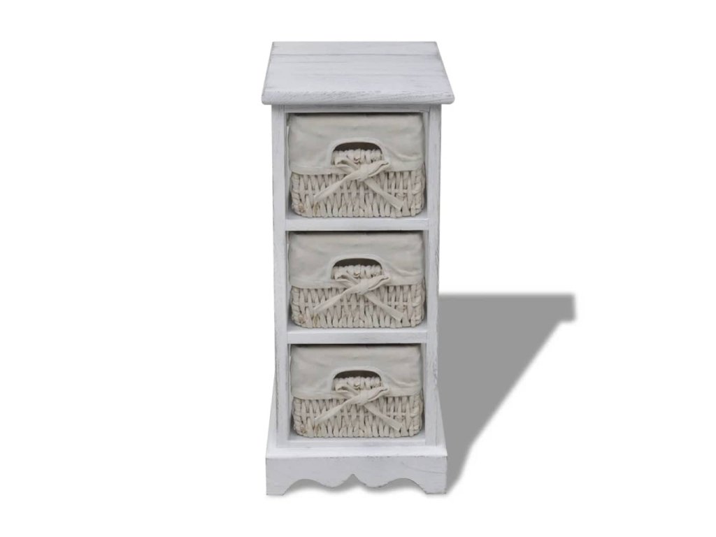 Dřevěný úložný regál se 3 pletenými košíky bílý 240796