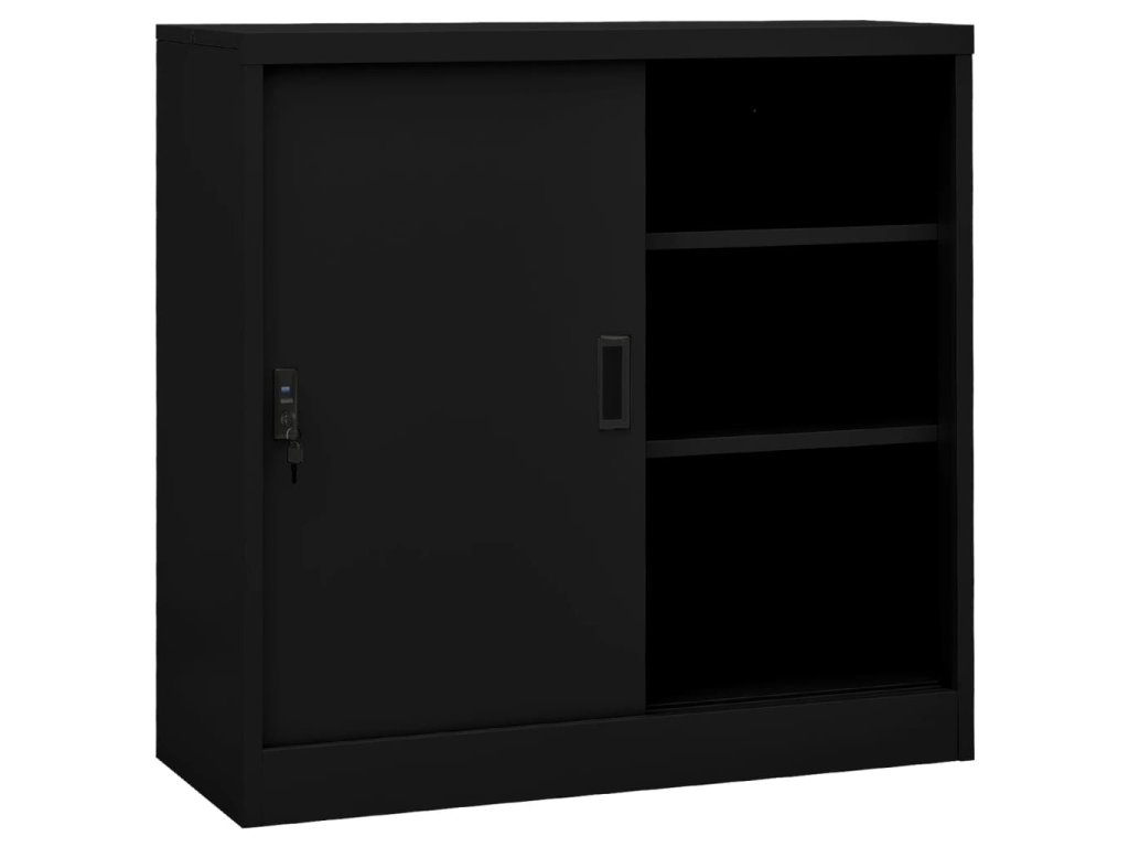 Kancelářská skříň s posuvnými dveřmi černá 90 x 40 x 90 cm ocel 335952
