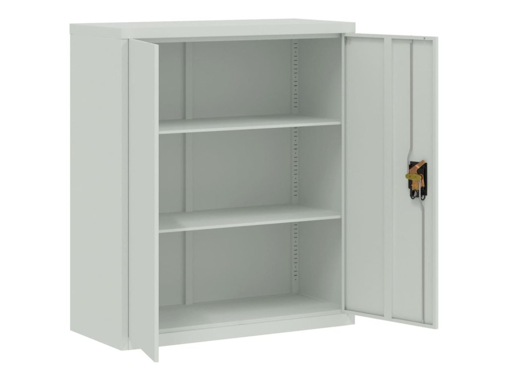 - Nastavitelné police: Úložná skříňka je vybavena 2 nastavitelnými policemi, které umožňují přehledné třídění souborů do různých kategorií.