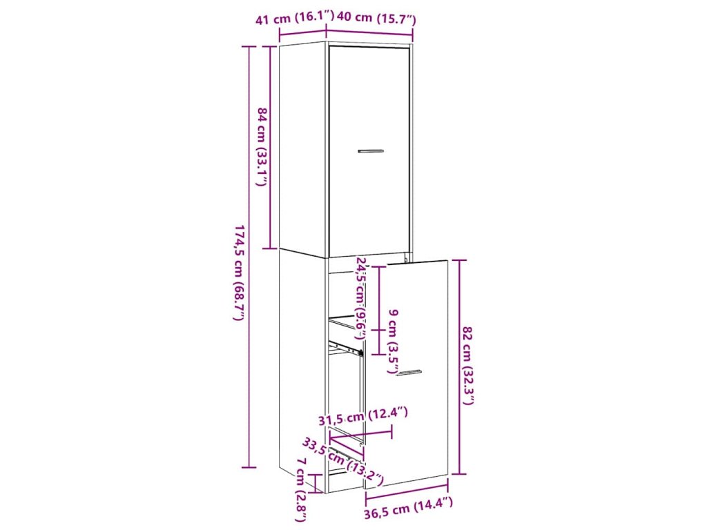 - Celkové rozměry: 40 x 41 x 174.5 cm (D x Š x V)