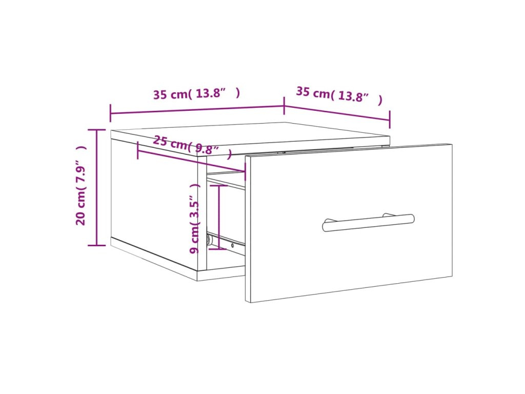 Nástěnný noční stolek černý 35 x 35 x 20 cm 829790