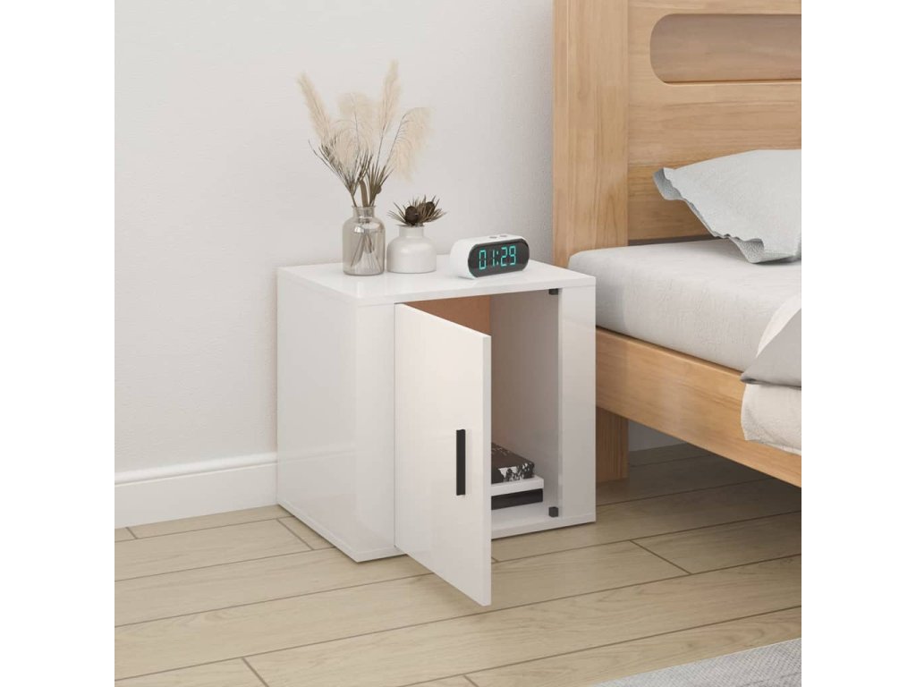 Noční stolek bílý s vysokým leskem 50 x 39 x 47 cm 816692