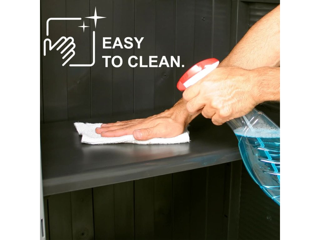 Úložná skříňka je vyrobená z plastu, takže se snadno čistí. Uvnitř najdete spoustu místa, kam si můžete uschovat všechny důležité věci, které chcete mít na dosah ruky. Výšku jednotlivých polic lze upravovat, abyste si je mohli rozmístit podle vlastních potřeb. Skříň má kompaktní design a pomůže vám maximálně využít i omezené prostory.
