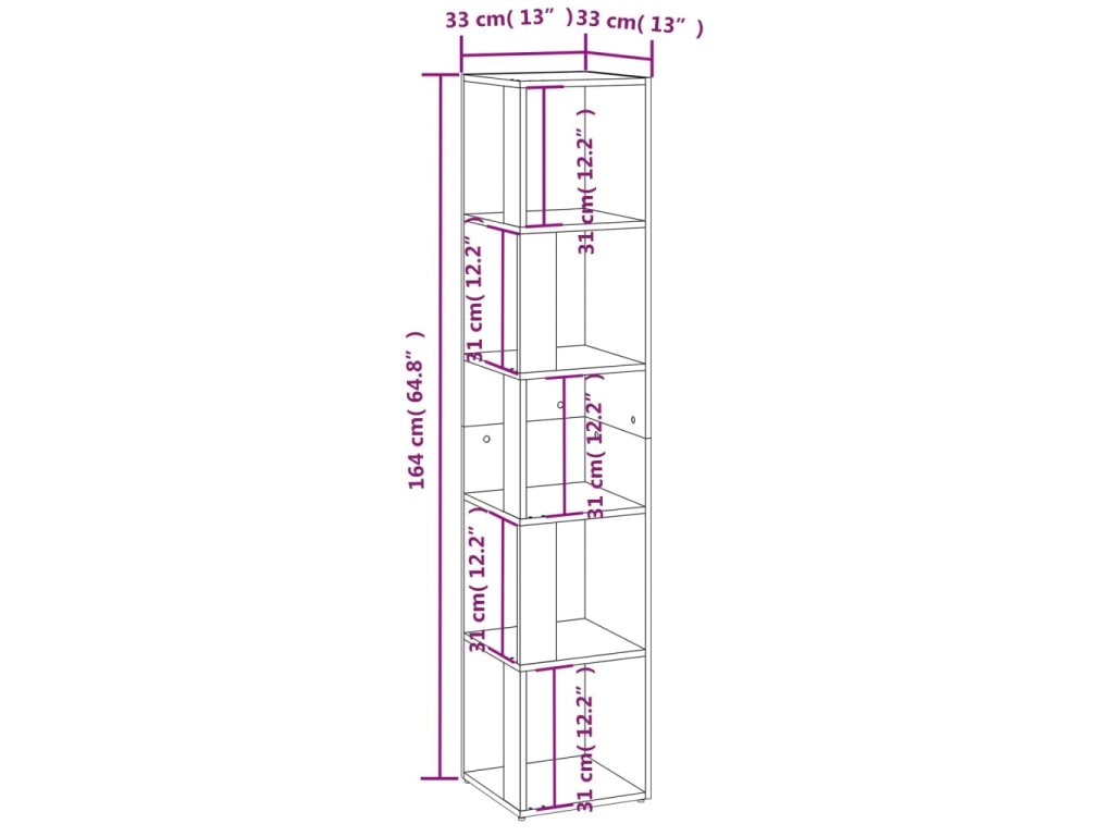 Tato rohová skříňka představuje ideální stylový doplněk do vašeho obývacího pokoje! Obsahuje 5 přihrádek, kde si můžete hezky uspořádat svoje knihy, CD, časopisy, dekorace a pokojové rostliny.