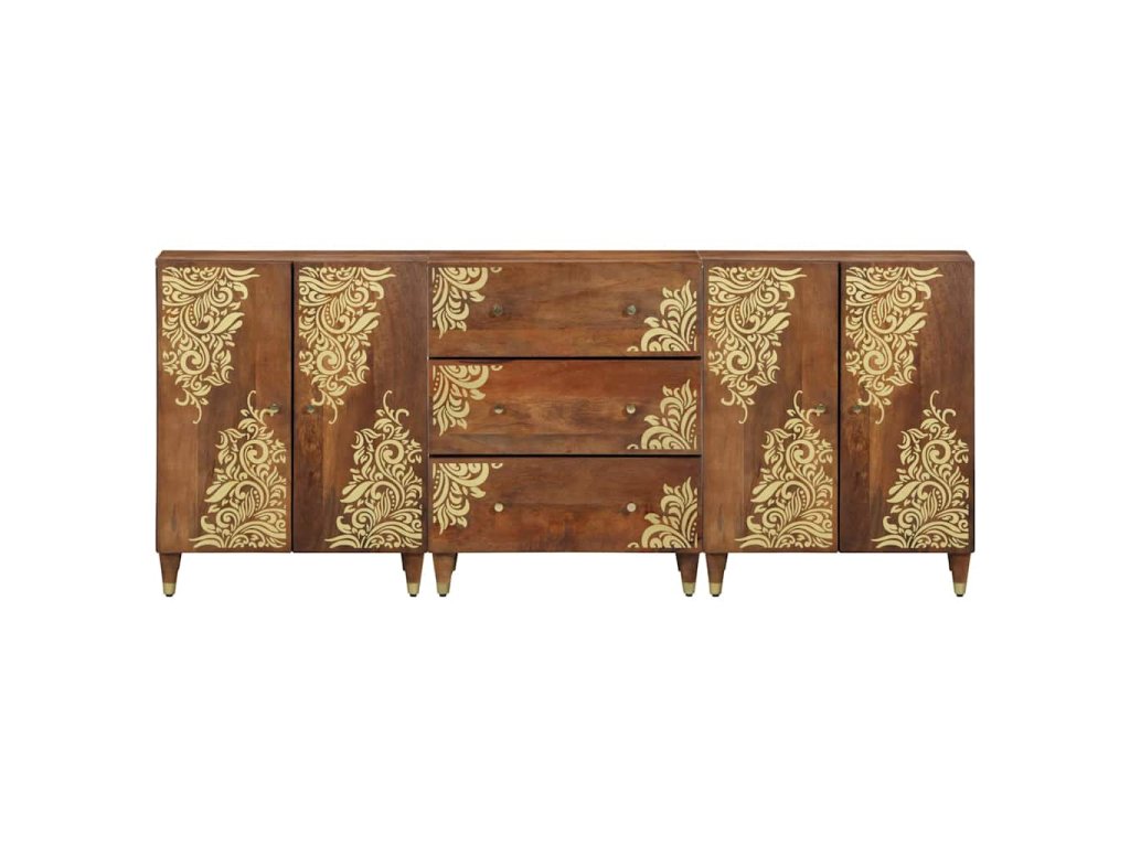Okouzlující zlatý design Každá skříňka v tomto setu má krásné zlaté potisky, které spojují eleganci s funkčností. Tyto umělecké zdobení dodávají kousek opulence, který ve vašem interiéru dokonale vynikne. Nástěnná úspora místa Set je navržen na zavěšení, což šetří místo na podlaze. Tato funkce pomáhá optimalizovat prostor, aniž by se obětovalo úložné místo, a vytváří moderní koupelnu. Silné solidní magnové dřevo Vyrobené z odolného magnového dřeva, které vyniká dlouhou životností a hezkým vzhledem. Tento kus nábytku je stavěný, aby vydržel, a pečlivý výběr dřeva přidává na síle a důvěryhodnosti. Funkční úložná řešení Skříňka nabízí spoustu prostoru a snadno použitelné mosazné úchyty, které zaručují bezpečné uložení ručníků a osobních věcí. Různé úložné prvky přizpůsobují potřeby úložného prostoru, aniž by narušovaly harmonie designu. Moderní styl Clean lines a minimalistické detaily tohoto setu doplňují moderní bydlení. Jeho jednoduchý, ale elegantní design nabízí perfektní balanc mezi praktičností a estetikou, což ho dělá ideální volbou pro každou koupelnu.- Barva: Medově hnědá a zlatá
