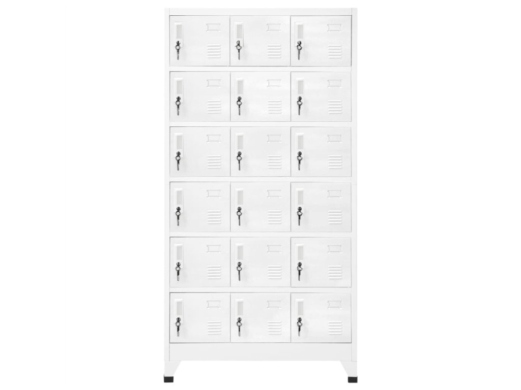 S 18 přihrádkami s uzamykatelnými dvířky má tato skříňka dostatek úložného prostoru pro uložení oblečení a dalších věcí. Každá dvířka jsou vybavena držákem na jmenovku a větracími otvory. Šatní skříňka je vyrobena z plechu, takže je odolná a snadno se čistí. Sestavení je snadné.
