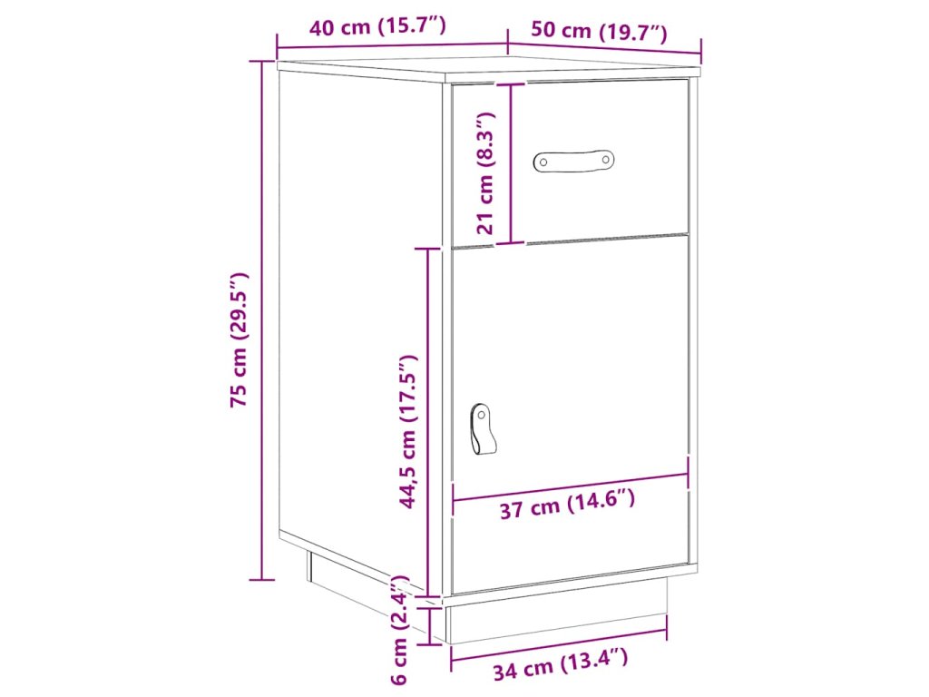 Skříňka k psacímu stolu bílá 40x50x75 cm masivní borové dřevo 820098