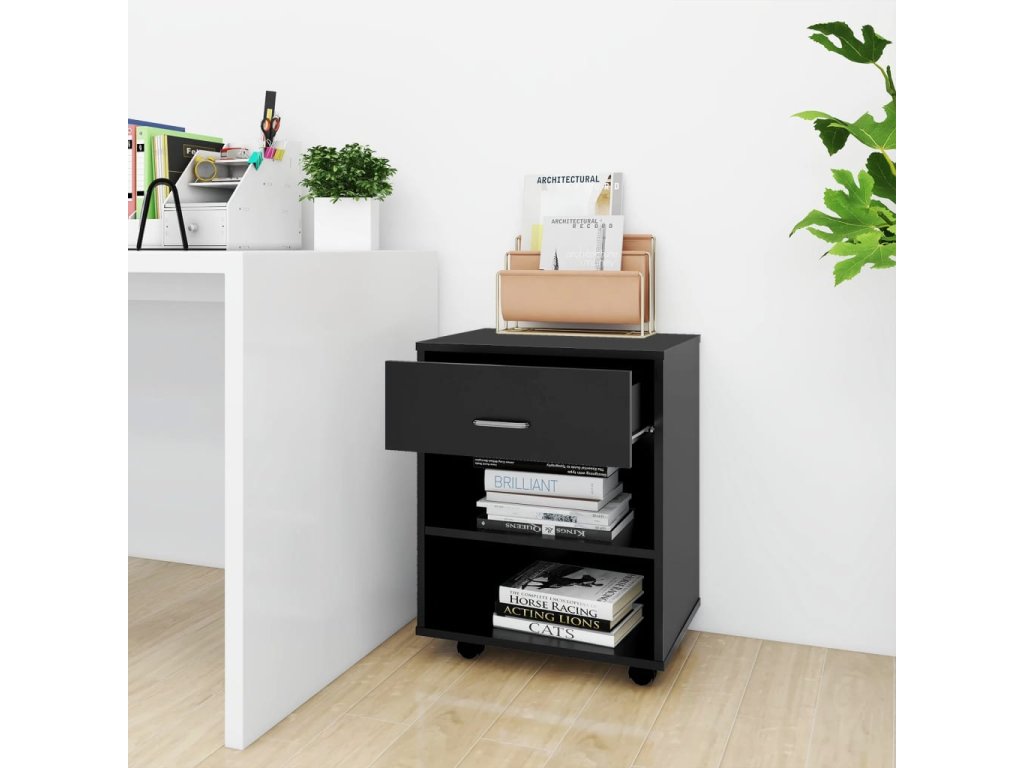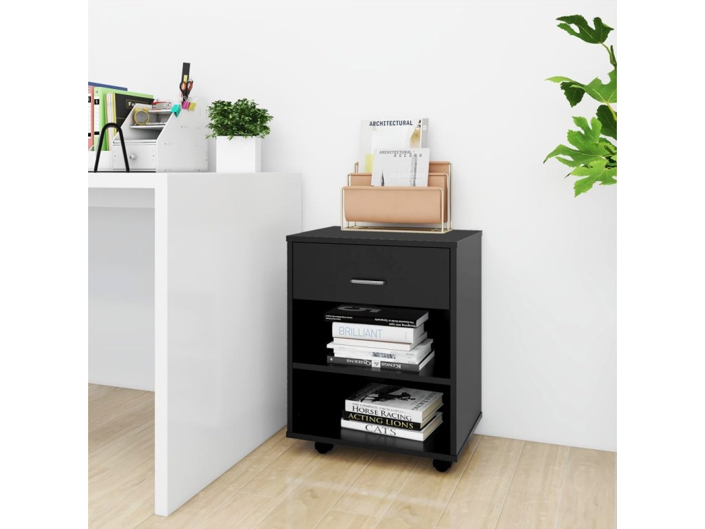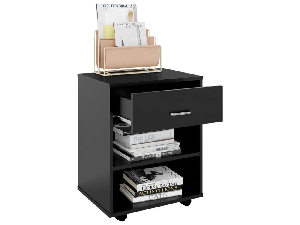 Skříňka na kolečkách černá 46 x 36 x 59 cm kompozitní dřevo 808468