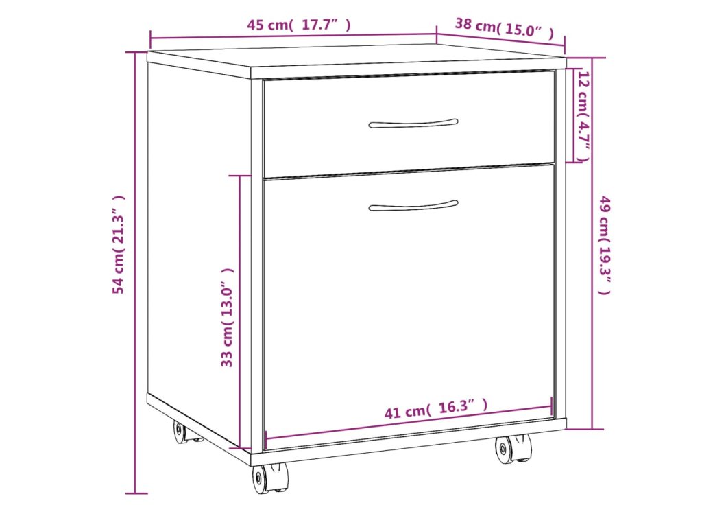 Skříňka na kolečkách kouřový dub 45x38x54 cm kompozitní dřevo 815963